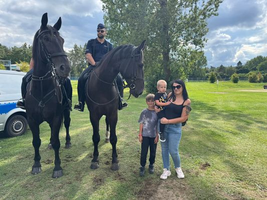 Tym razem funkcjonariusze Komendy Powiatowej Policji w Górze oprócz stoiska promocyjnego, prezentacji pojazdów i sprzętu służbowego przy współpracy z ogniwem konnym Komendy Miejskiej Policji w Poznaniu zaprezentowali dwuosobowy patrol konny w składzie asp. szt. Mariusz Branecki oraz sierż. Krzysztof Waszak. Zarówno stanowisko promocyjne jak i Policja konna cieszyły się dużym zainteresowaniem osób biorących udział w akcji charytatywnej. Wyżej wymienione działania stanowiły niepowtarzalną okazje do poznania metod oraz sposobu działania Policji konnej. Zainteresowani mieli możliwość wykonania pamiątkowej karty daktyloskopijnej zawierającej własne odciski linii papilarnych oraz mogli dowiedzieć się czym jest daktyloskopia. Ponadto chętni mogli usiąść za kierownicą radiowozów i motocykli. Uczestnikom tego przedsięwzięcia wręczano upominki w postaci słodyczy oraz elementów odblaskowych. Minione wydarzenie stanow kolejny dowód empatii górowskiej Policji, która nie pozostaje obojętna w obliczu choroby 9-letniej Laury.