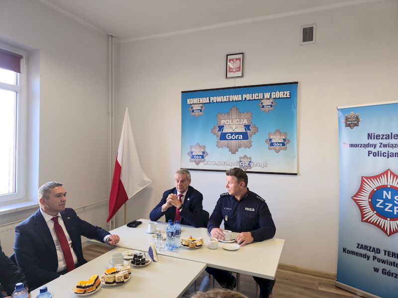 Wiceminister Spraw Wewnętrznych i Administracji Wiesław Szczepański wraz z posłem Arkadiuszem Sikorą złożyli wizytę w Komendzie Powiatowej Policji w Górze.