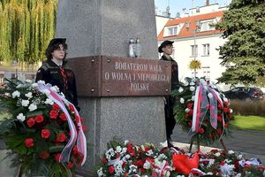 Po odśpiewaniu hymnu narodowego, delegacje złożyły kwiaty i znicze pod Pomnikiem Wolności, oddając cześć tym, którzy walczyli o wolną Polskę.