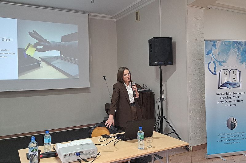 Policjantka Zespołu do Walki z Przestępczością Gospodarczą Komendy Powiatowej Policji w Górze spotkała się ze słuchaczami Górowskiego Uniwersytetu Trzeciego Wieku i omówiła problematykę oszustw oraz zagrożeń w sieci.