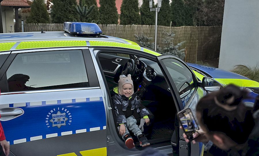 Zwieńczeniem wizyty była możliwość obejrzenia radiowozu. Dzieci mogły wsiąść do środka i poczuć się wyjątkowo- to doświadczenie, które na długo pozostanie w ich pamięci.
