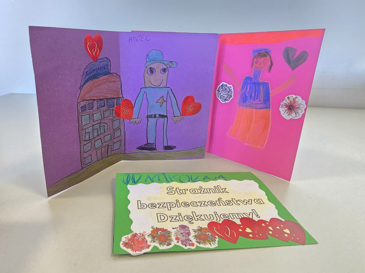 To wzruszający gest wdzięczności za codzienną służbę i troskę o bezpieczeństwo mieszkańców. Policjanci z uśmiechem i ogromnym wzruszeniem przyjęli kolorowe prace, pełne rysunków i serc.