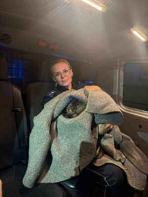 Aby bezpiecznie go schwytać, policjanci narzucili na zwierzę koc, a następnie funkcjonariuszka ostrożnie wzięła je na ręce i wsiadła z nim do radiowozu. Zwierzę, choć wystraszone, pozwoliło się zabrać.